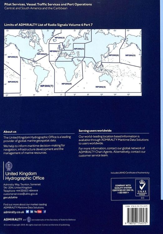 Volume 6 of Admiralty's List of Radio Signals covers pilot services, vessel traffic services and port operations, split across eight volumes.