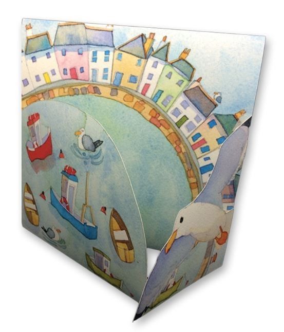 This fantastic 3D effect die-cut card from Emma Ball features a lovely harbour scene complete with boats, seagulls and colourful houses. This card folds beautifully to create the scene and makes a fantastic greeting card for all occasions.