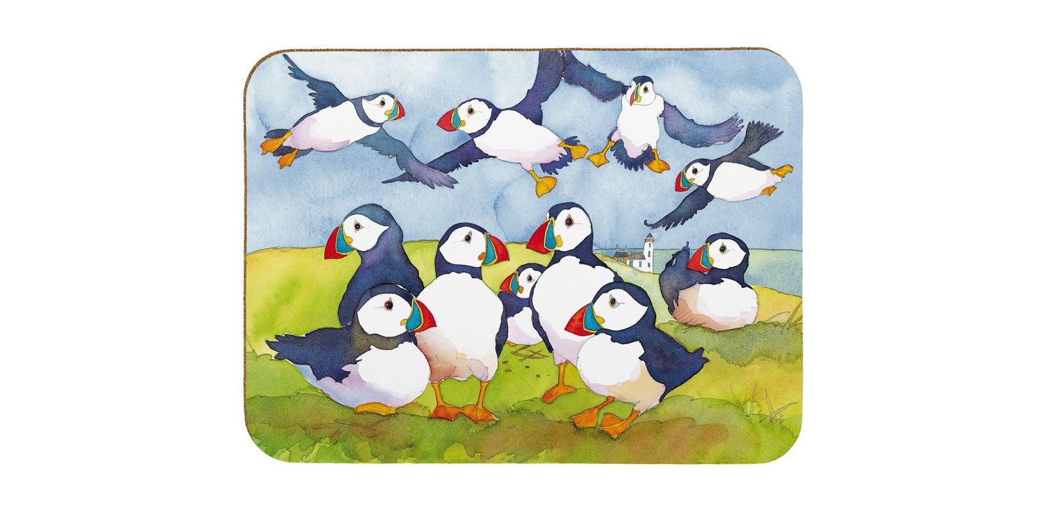 This stunning puffin placemat is decorated with one of Emma Ball's signature designs. Perfect for dressing your dining table and adding that special touch, this melamine placemat is manufactured with a natural eucalyptus base, backed with durable cork.