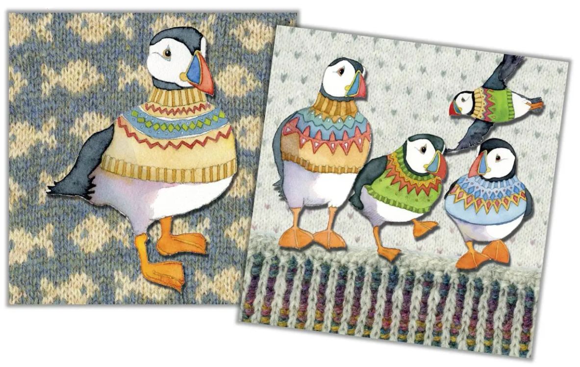 Each card measures 10cm square, featuring two complimenting designs from Emma’s Woolly Puffins collection. This set contains 10 blank notelets, with an accompanying white envelope.