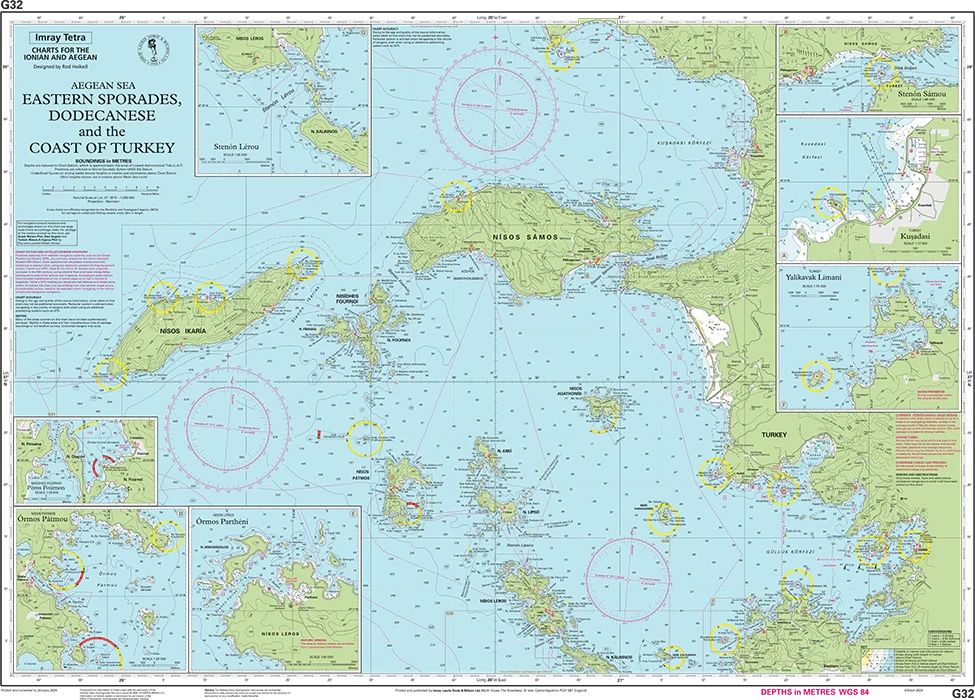 Aegean Sea - Greece & Turkey. Eastern Sporades, Dodecanese and the coast of Turkey.
