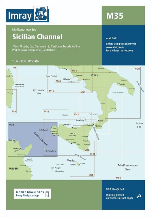 Designed to show passage from West Sicily to Isola di Pantelleria and the Tunisian Coast.
