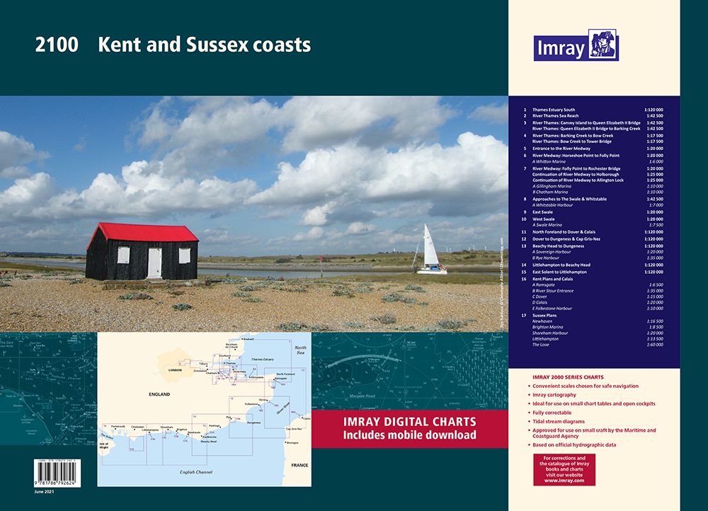 It includes 5 extra chart sheets and incorporates all the latest official bathymetric surveys. The latest harbour developments at Dover and Calais are also included. The plan of The Looe has had a scale increase to provide larger scale coverage. Passage planning sheets are now at a uniform scale of 1:120 000 and coverage extends as far West as the Isle of Wight. Coverage of The Swale has increased to 1:20 000 and split over two sheets.